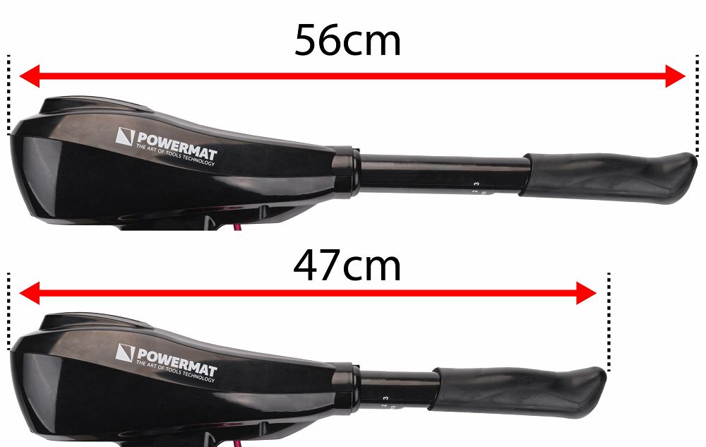 Raztegljiv ročaj za enostavno krmarjenje čolna z možnostjo podaljšanja do 56 cm.
